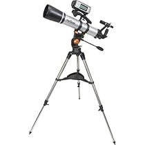 - 90mm refractor optical design with all coated glass optics and 660mm (f/7) focal length for crisp clear images